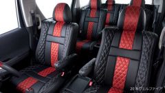 新キルティング”チェッカーステッチ”を採用したシートカバーです。キルティングの間を走る3本のカラーラインは3色用意されています。
